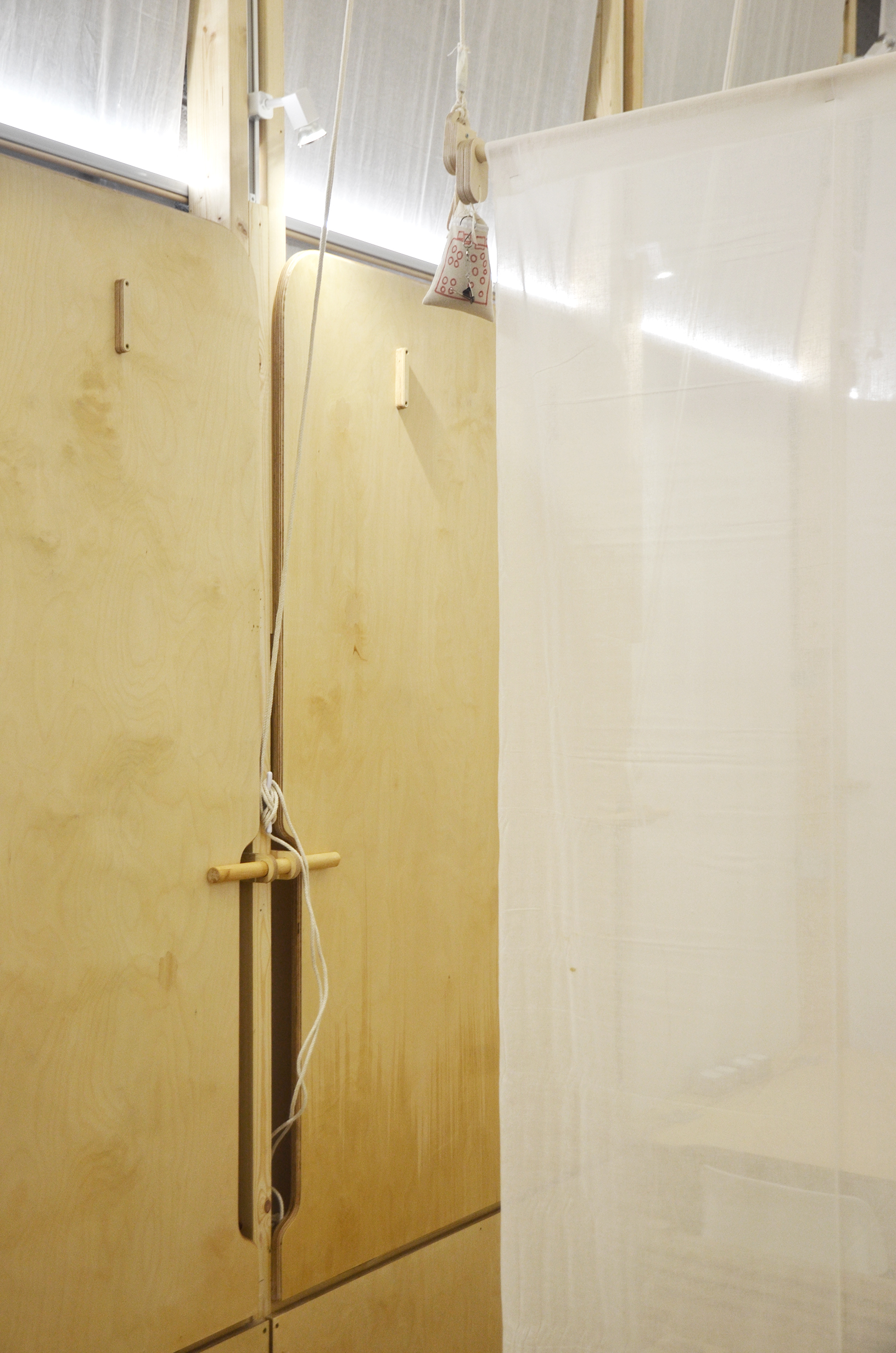 Each workstation can be stored inside a standard shelving unit and has catches which allow the user to attach different ‘tops’. One moment it can support the large 4-person tables which fold down from the walls, the next it can hold smaller table pieces and form mobile 2-person or 4-person tables. This same piece can then be rotated to create a mobile easel.