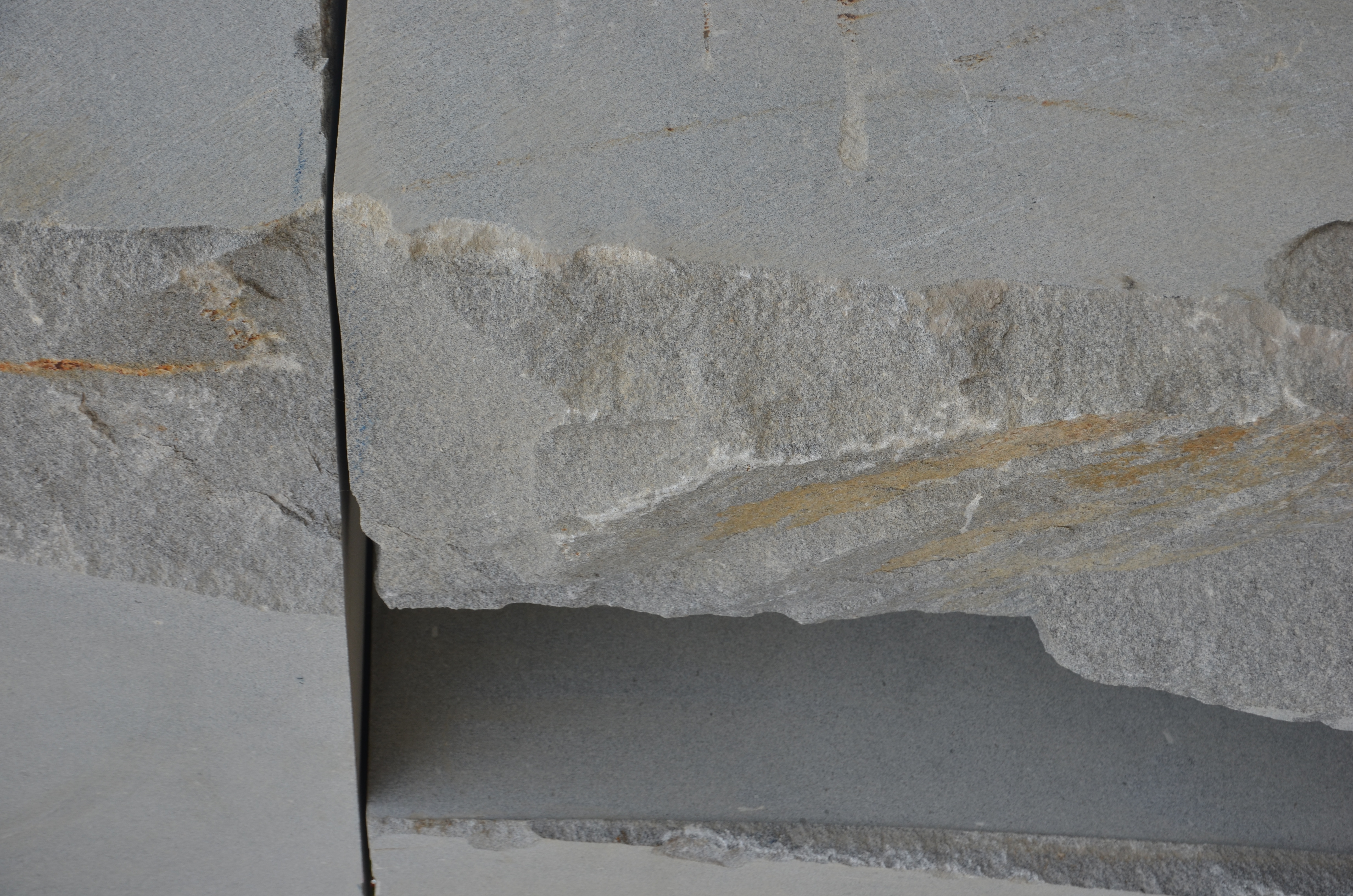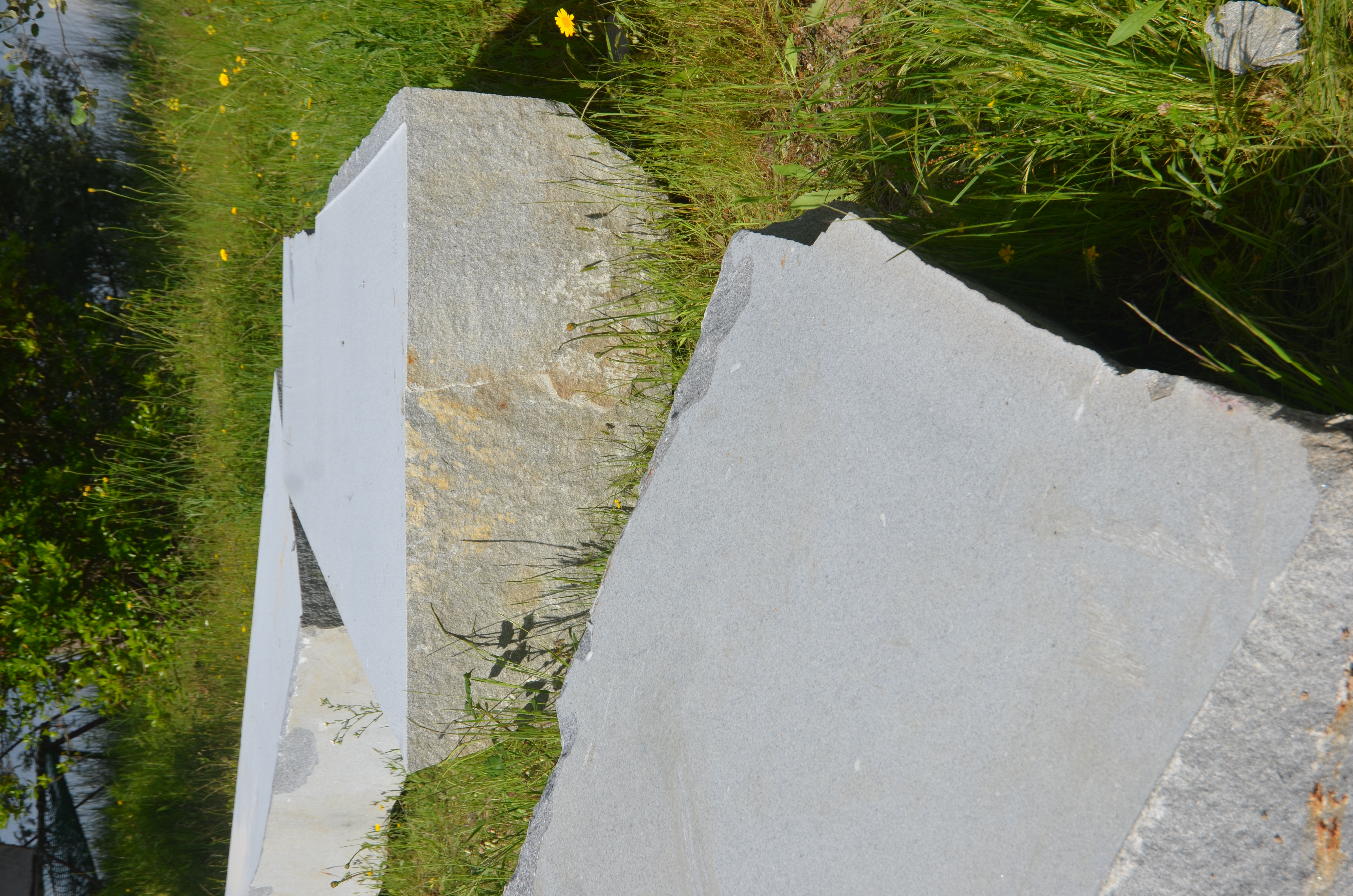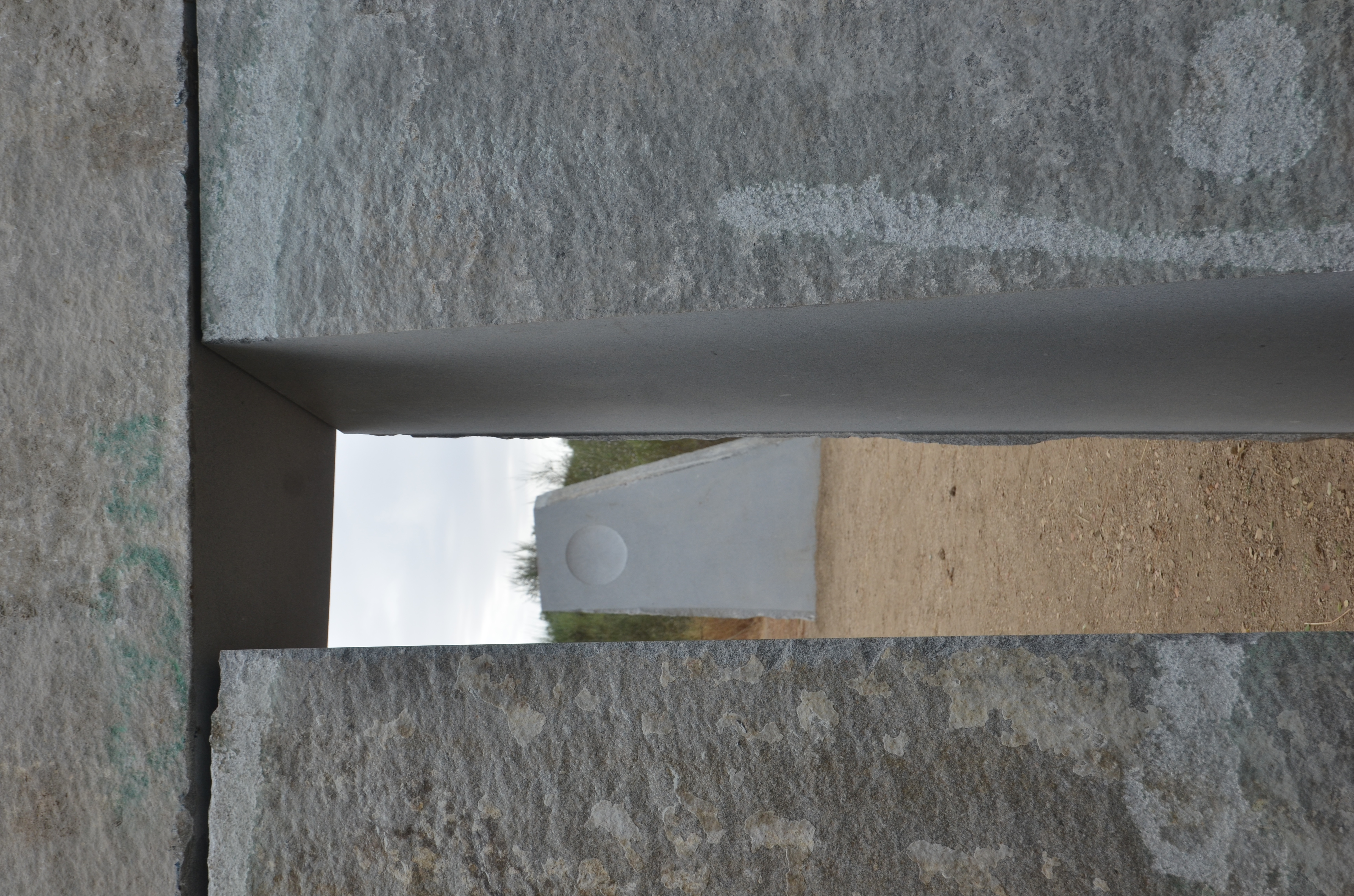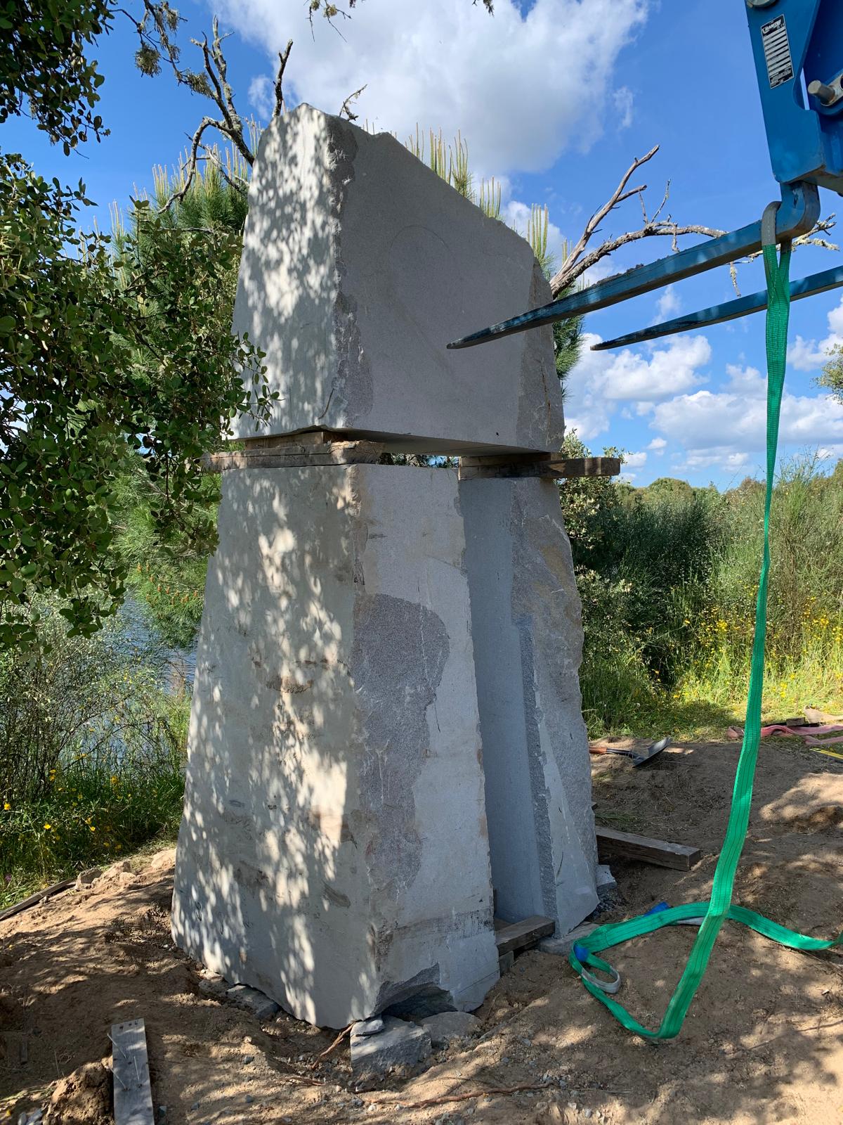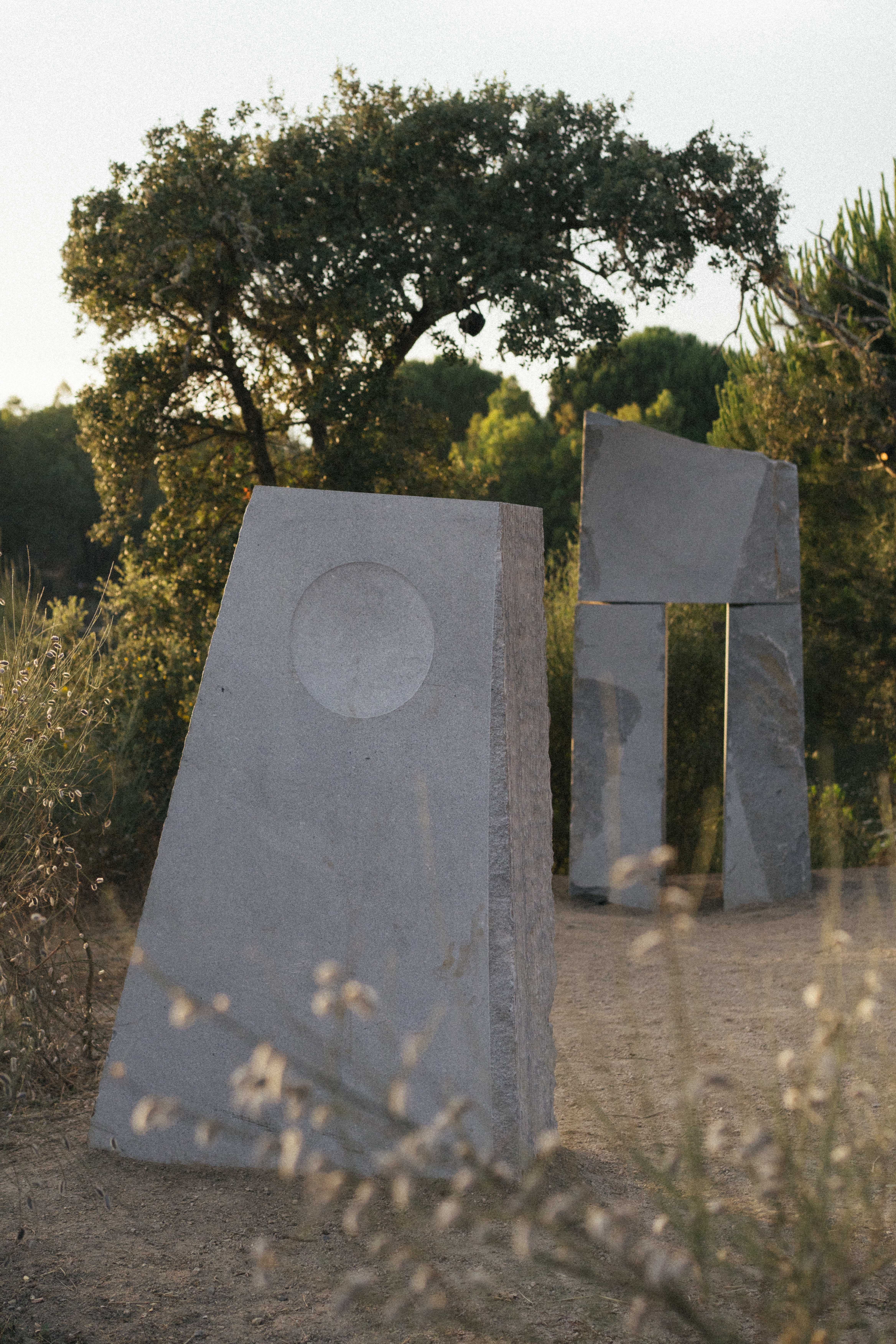 A single, 14 tonne granite rock was cut into 4 pieces, moved to site and then reassembled with the central piece missing to create a doorway. This central piece is rotated to align with the equinox, and has a moon-shaped sundial carved into both the southern and northern faces.