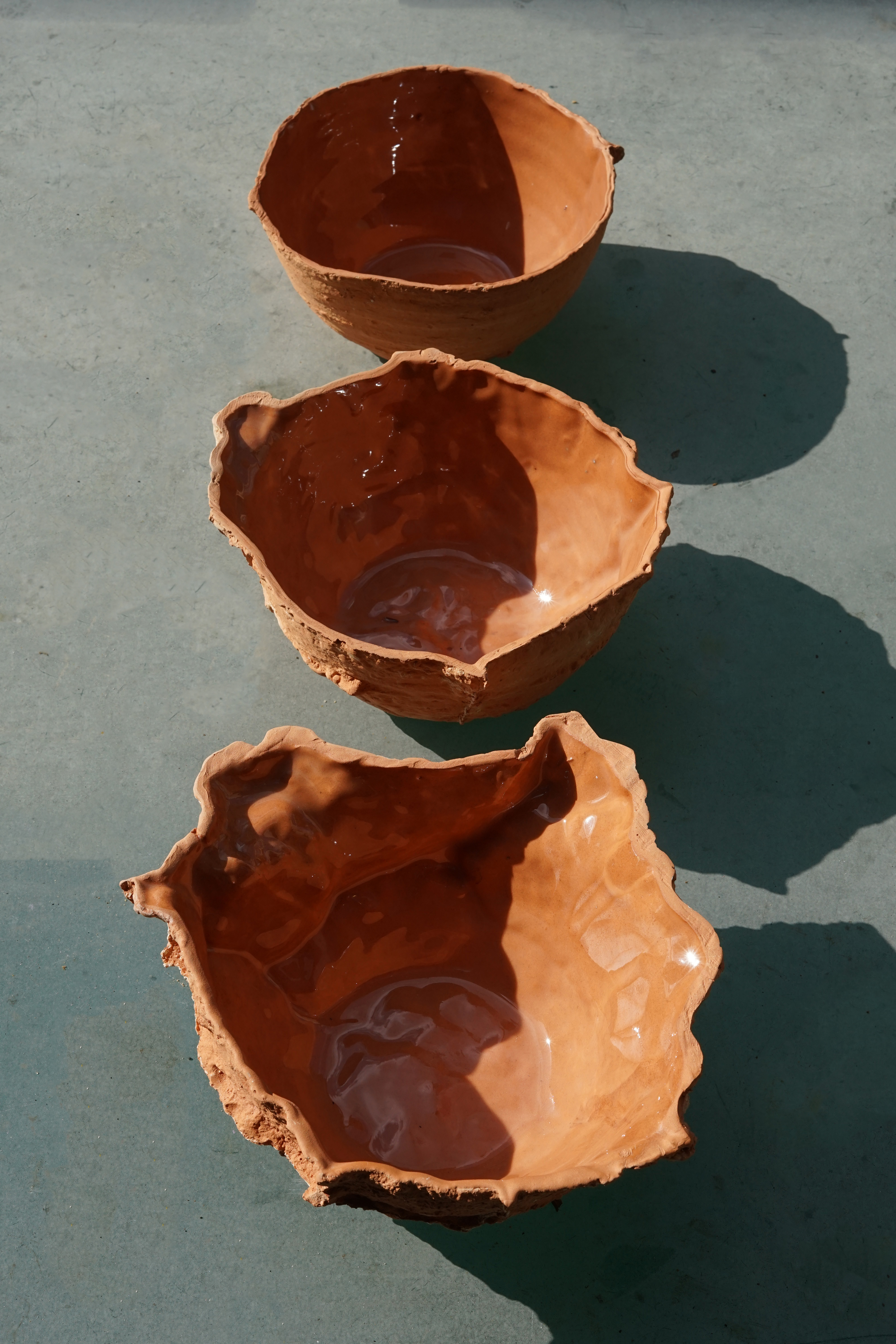 Slip casting is a process which both requires and celebrates the changing of material states. Adapted to earth based techniques in an evolving journey, each step leaves traces of its earthy imprint on the next. This resulted in a process of many stages and transformations of soil states, as we processed, cast and re-cast the earth back into itself. From compressed solidity, viscous liquid, porous cast form, to vitrified shell, the earth follows a dynamic and reciprocal dialogue with itself: of positive to negative to positive. Each stage sought to engage with the soil as a living system, as we opened ourselves to be led by the properties, behaviours, and desires of the soil to create its own forms.